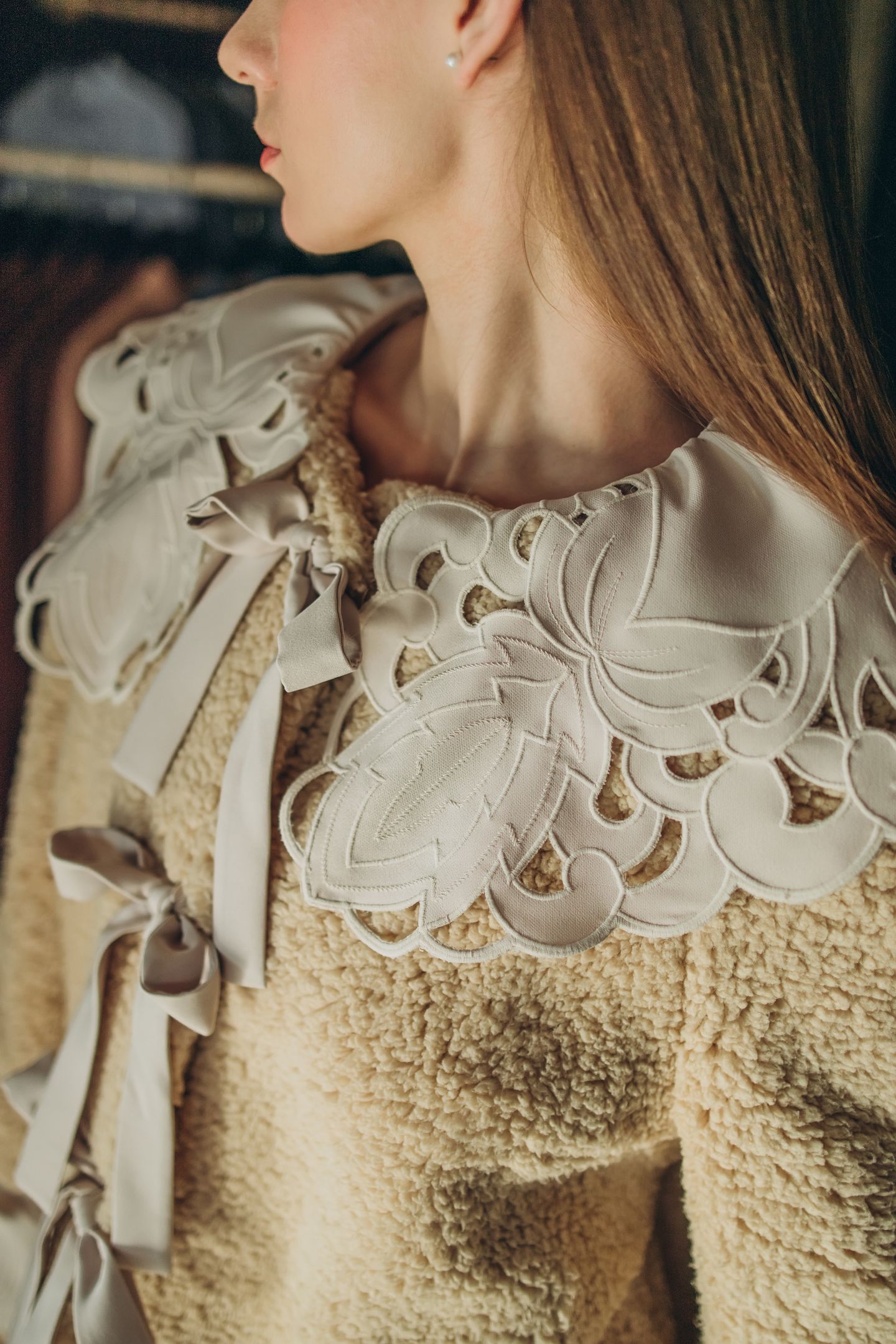 бежевая с бантами